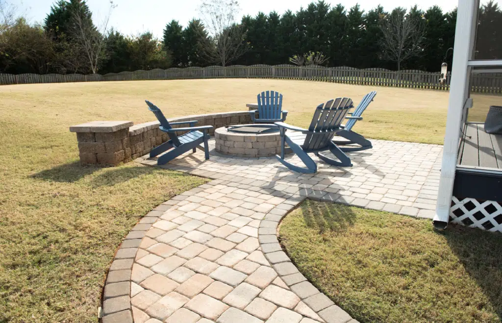 ✅ Customization: There are endless possibilities for designing and customizing your patio, like including a fire pit. Pavers and hardscape materials come in various sizes, shapes, and colors to suit any style.